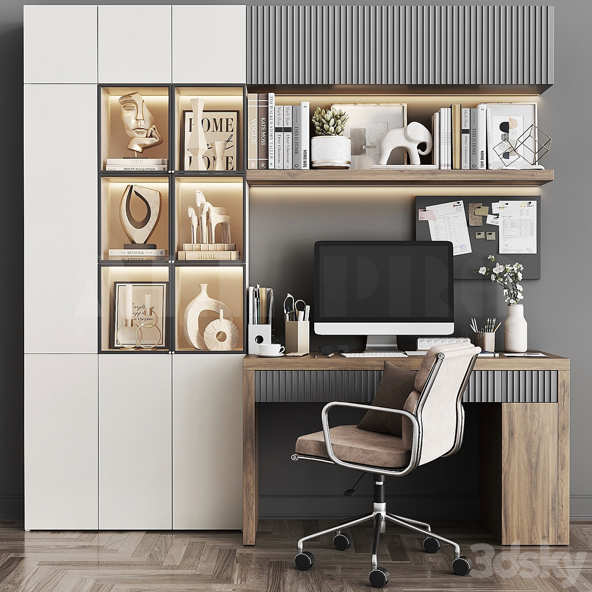 Workplace 2. Minimal home office furniture. Modular set